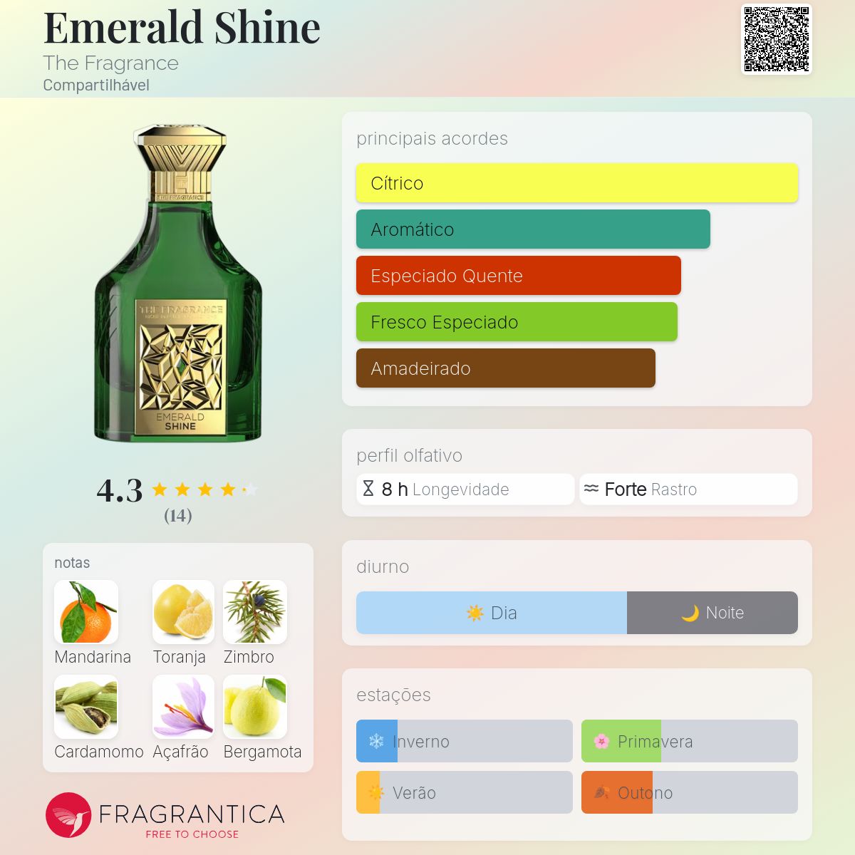 The Fragrance Emerald Shine é uma fragrância unissex sofisticada e impactante, parte da coleção The Crystal da marca turca The Fragrance. Inspirada na elegância radiante das esmeraldas de Cambridge e em histórias de amor e brilho, esta fragrância une frescor vibrante e profundidade oriental para criar uma presença marcante e luxuosa na pele.